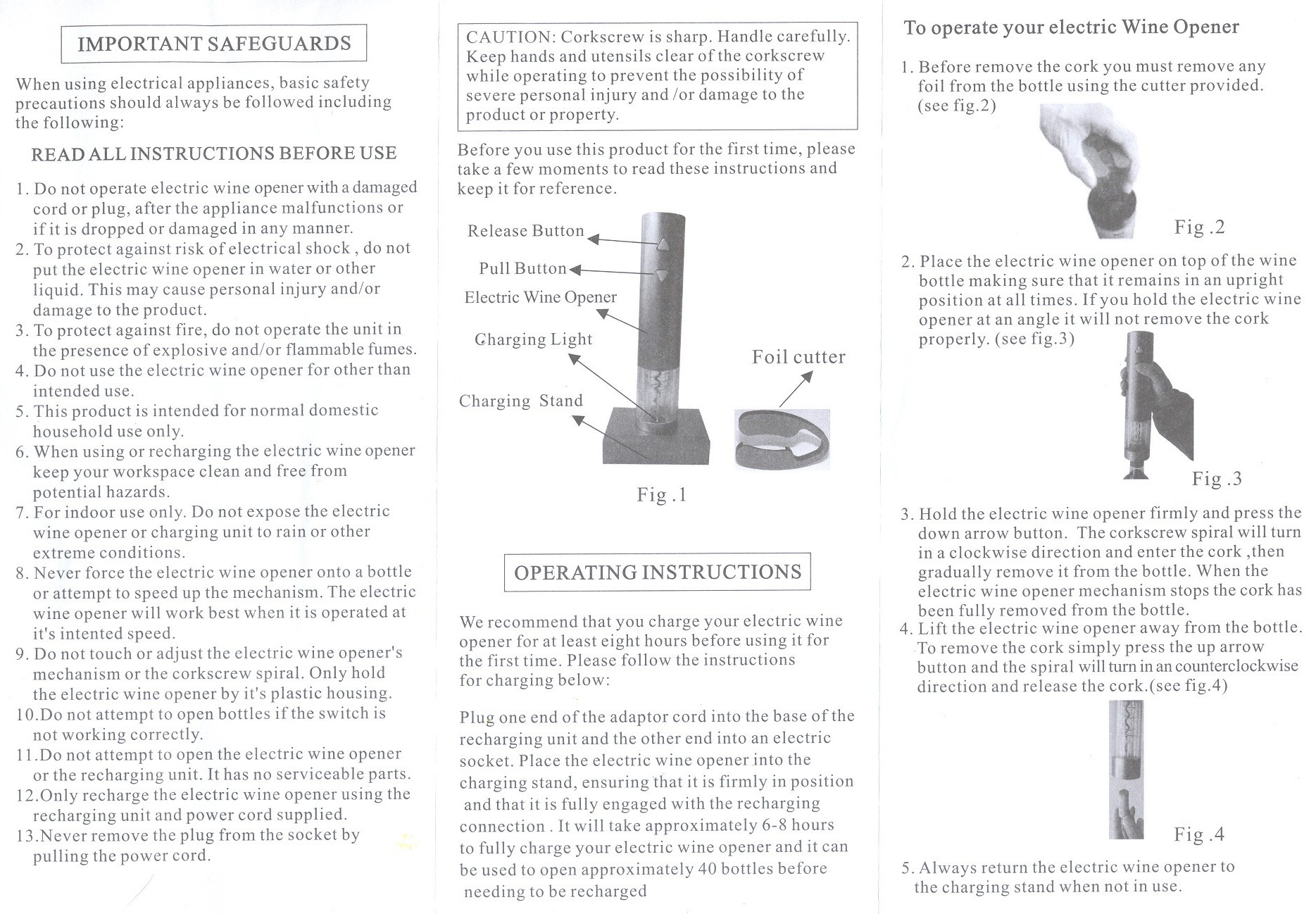 Hammacher Schlemmer Electric Wine Opener Model URE-758 (537 KB, 1 page)