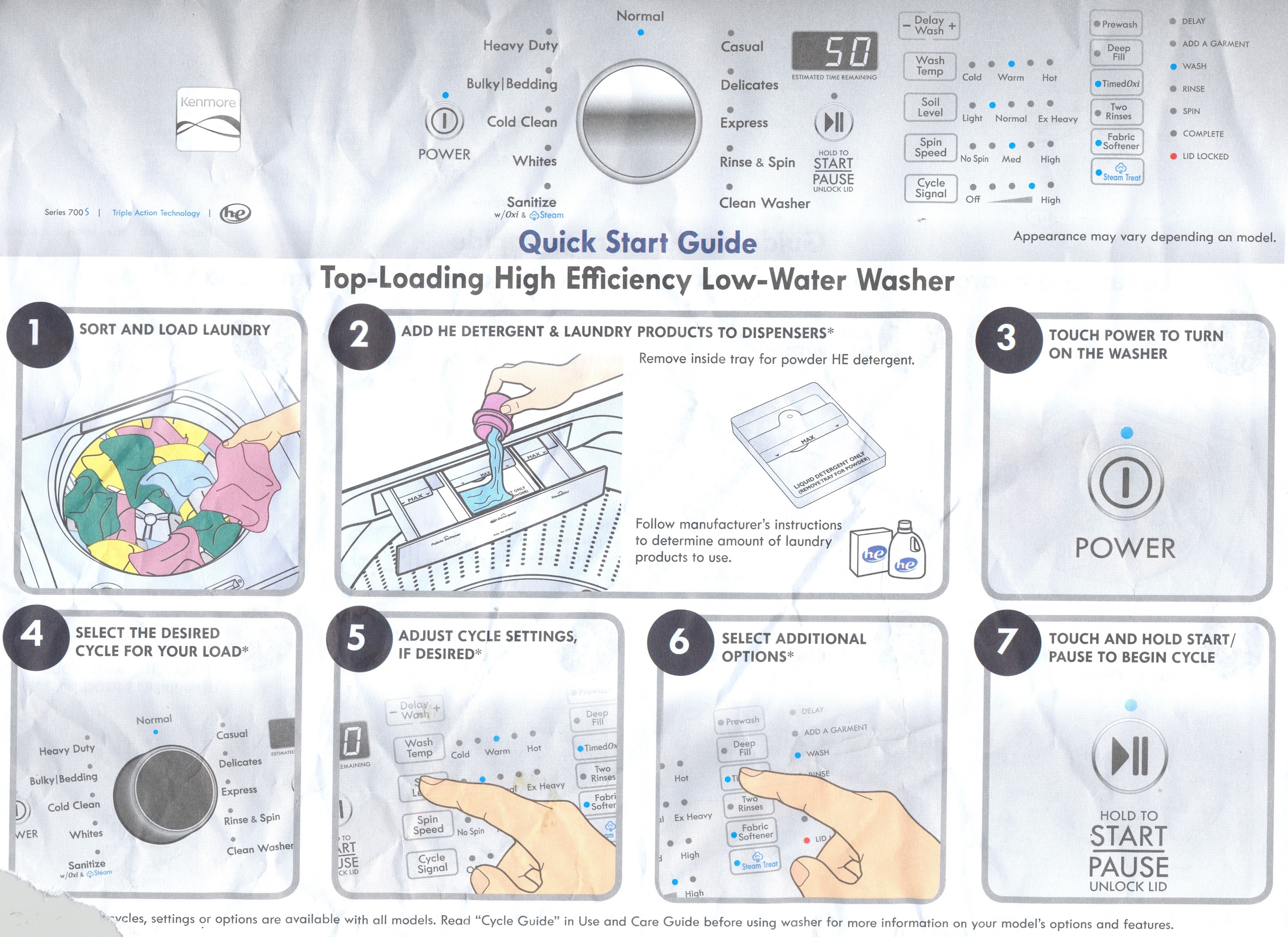 Kenmore Washer Models 110.26132410 and 110.27132410 Quick Start (4.1 MB, 1 page)